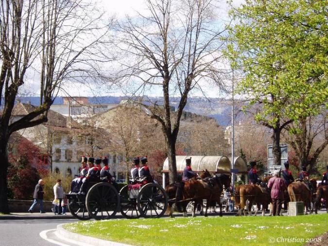 Défilé batterie d'artillerie 30 hommes, Yverdon-les-Bains